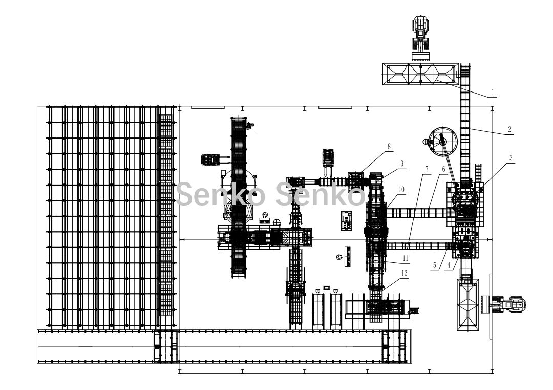 | 11,Forming machine | 12,Pallet recycling | 13, Pallet transferring | 14, Palletizer | 15,transfer cart |
