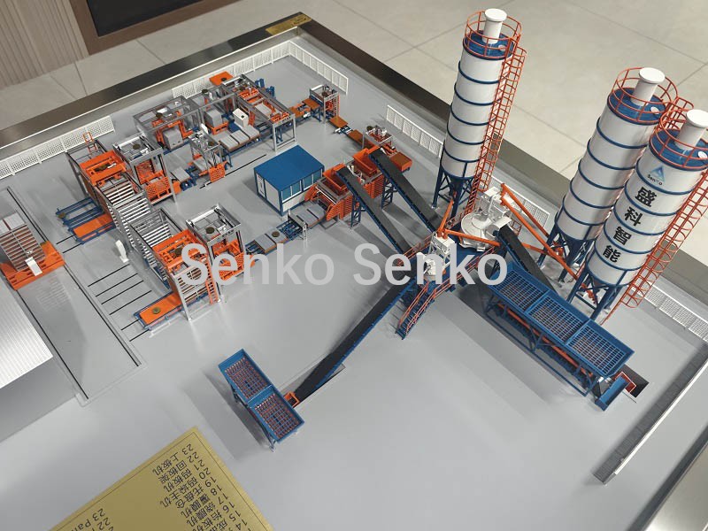 | 7,Base material conveyor | 8,Base material conveyor | 9, Hydraulic pallet feeder | 10,Pallet feeder | 11,Block forming machine | 12,Block conveyor |